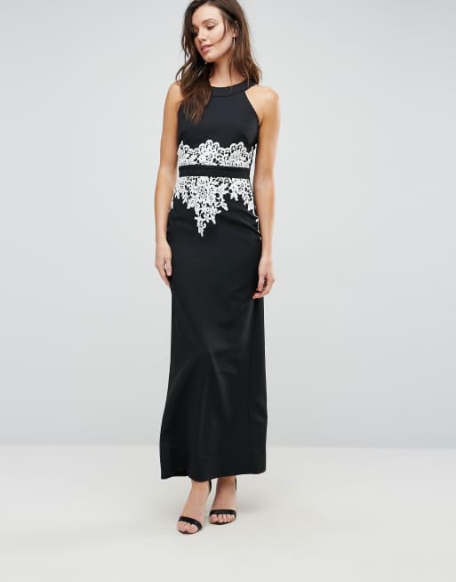Paperdolls Mono Halter Maxi Dress Black Cream Dresslover Uk