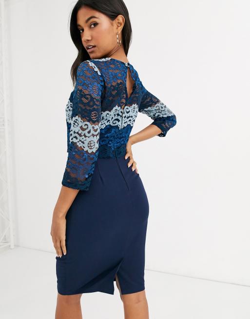 Paper Dolls Paper Dolls Blue Two Tone Lace Midi Bodycon Dress